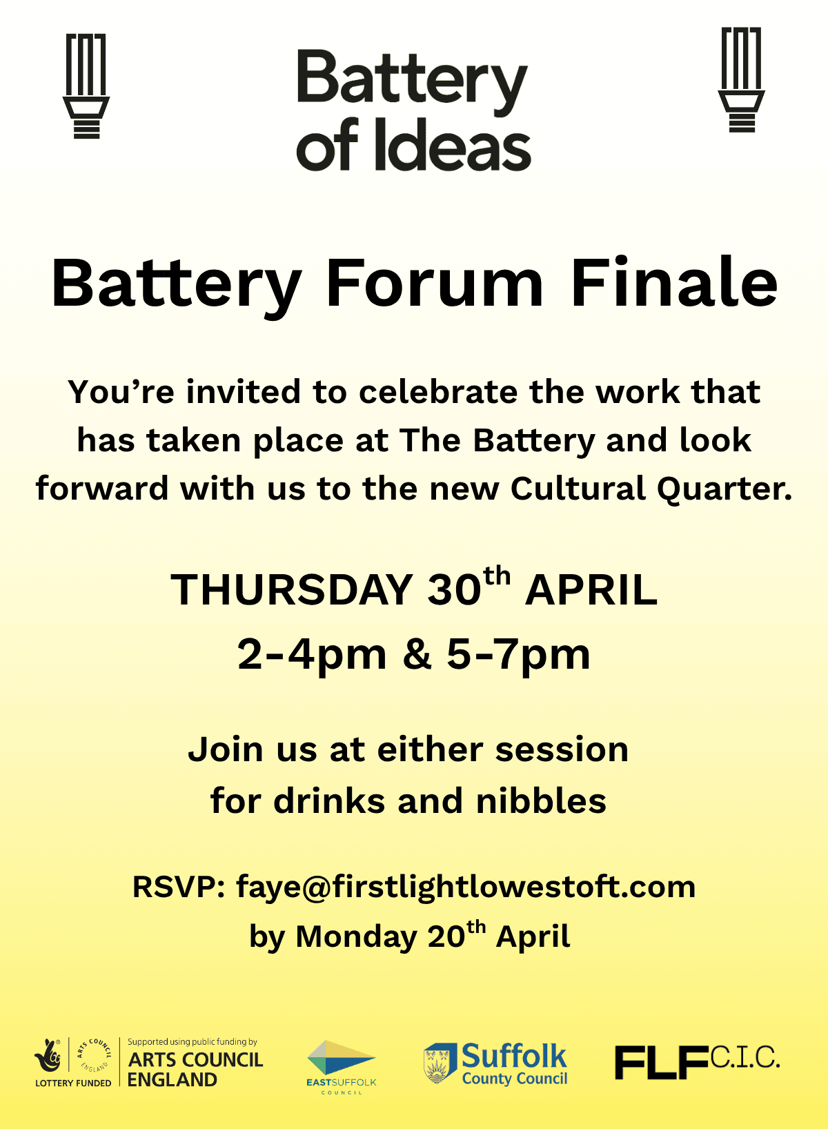 Battery Forum Finale Thursday 30 April 2026 14:00 19:00 The Battery 119 London Road North Lowestoft, England, NR32 1LZ United Kingdom (map) Google Calendar ICS